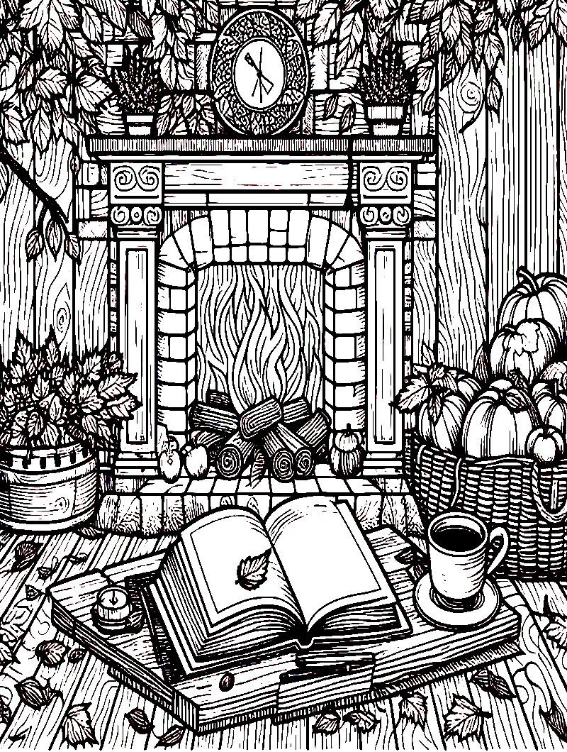 Autumn Coloring Pages: Reading beside a fireplace becomes the best choice to welcome autumn evenings when they turn cold. The gentle firelight illuminates while the cool pages flip through the gentle flames. Located under a comfortable blanket the firewood smoke scent and comforting sound of crackling embers transform the tale into a magical experience.