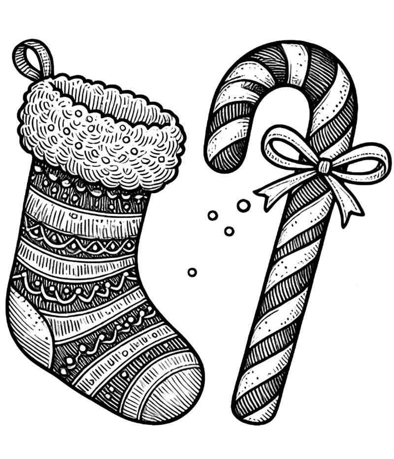 Candy Cane coloring pages are festive and sweet holiday fun. Classic striped candy cane designs are on these free printable designs, great for kids and adults to decorate with bright colors.
