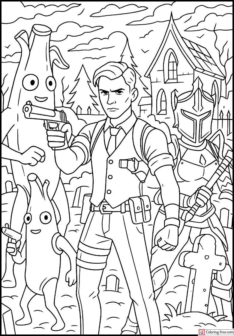 Midras and Red Knight in a scary cemetery Spooky coloring page of Fortnite, Peely! It is enjoyable and very exhilarating to colour with bold lines and haunting details.