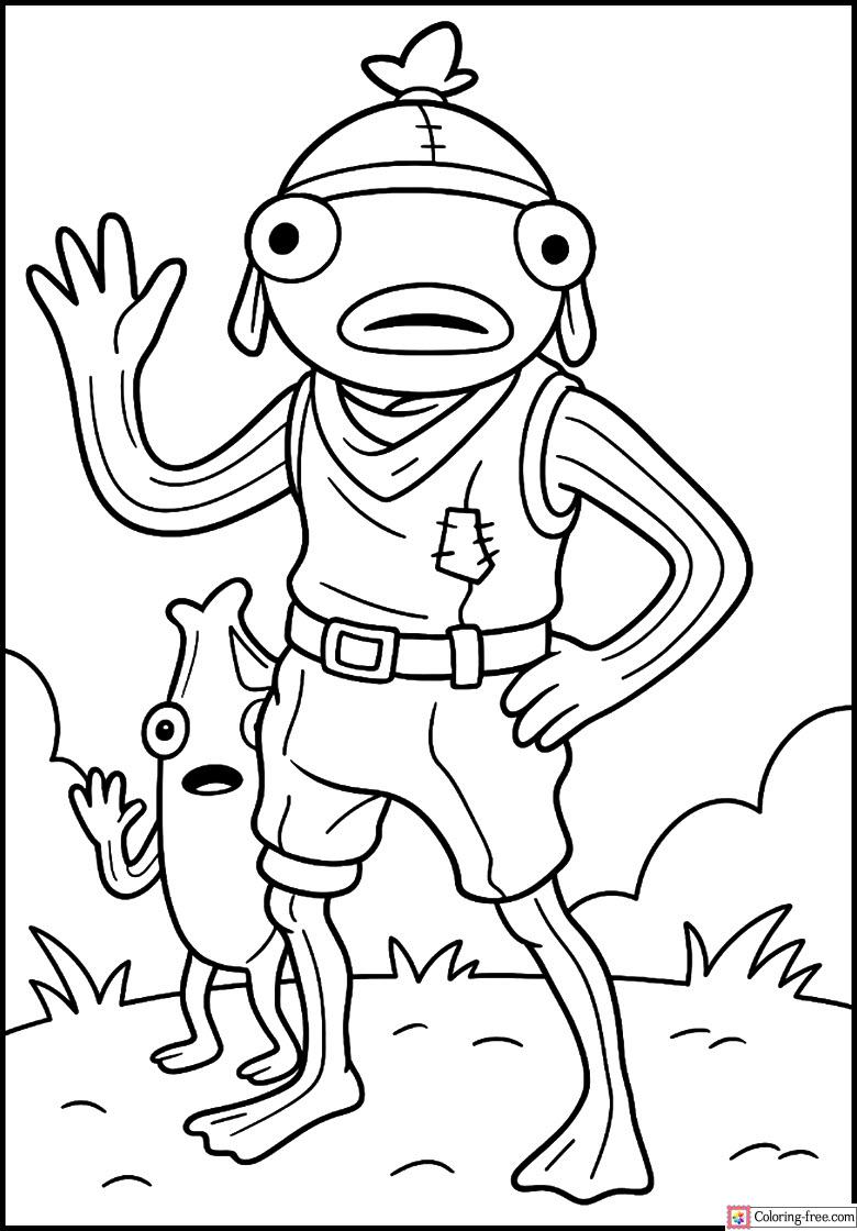 Fortnite colouring place of Fishstick in his unusual sarcasm! Fun page to be printed and coloured by fans is provided by bold outlines and ridiculous details.