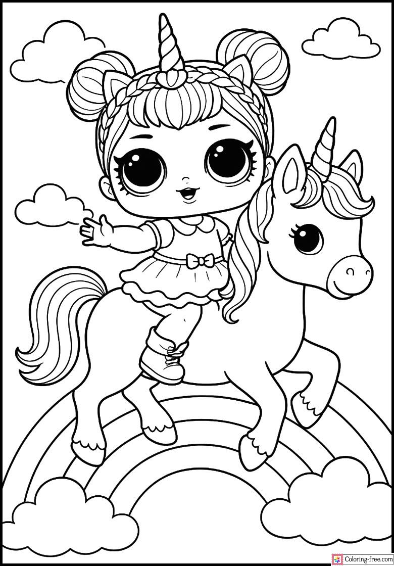Magical LOL Riding a unicorn on a rainbow! Kids colored Fun, detailed A4 coloring page Fun, magic-themed, unicorn dreaming Fun, fantasy fans Creativity and creative play Ideal use... show all