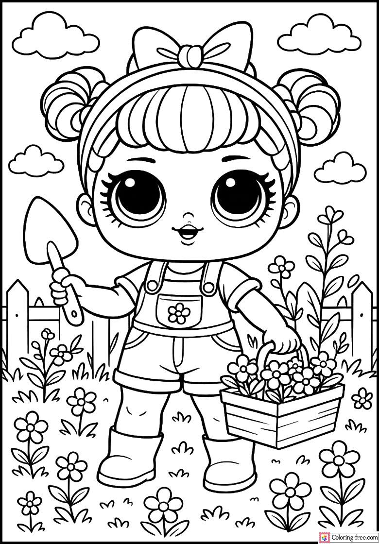 Cute LOL Doll is painting a flower! Colouring page A4 size cute and detailed, provided to kids who wish to be adventurous in their artistic and nature outdoor adventures, in charming... show all