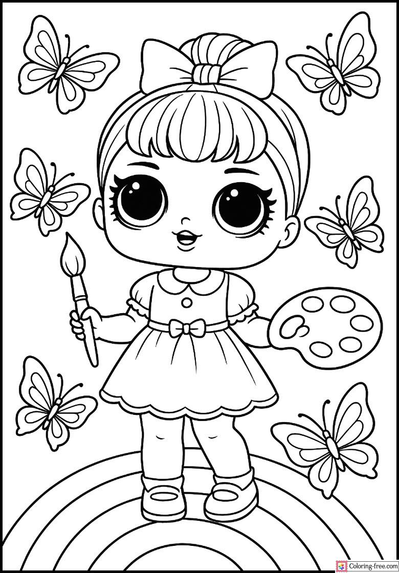 LOL Surprise Doll painting with color butterflies Adorable! Has a cute detailed A4 black and white coloring page with images that any art-loving, nature and creativity loving kid... show all