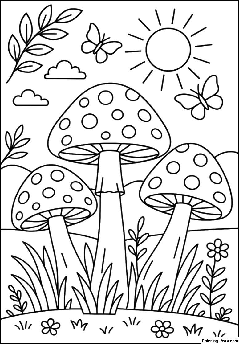 Printable Mushroom Coloring Pages; Begin with some simple earthy colors —browns, reds, oranges, creams as long as the stems and tops of mushrooms. Include greens to reflect grass, moss and leaves, to have a natural forest environment. In fantasy of mushroom, use purples, blues and pinks to look magical. Colour pencils may be soft blended, markers may be vivid, and water-colour may be dreamy. Draw drop highlights of white using a gel pen to get the making of dew spots or sun rays. Play background shades, or, when it is daytime, play with light blue which is a pretty color, or, when it is night, play with deep purple which is a pretty color.