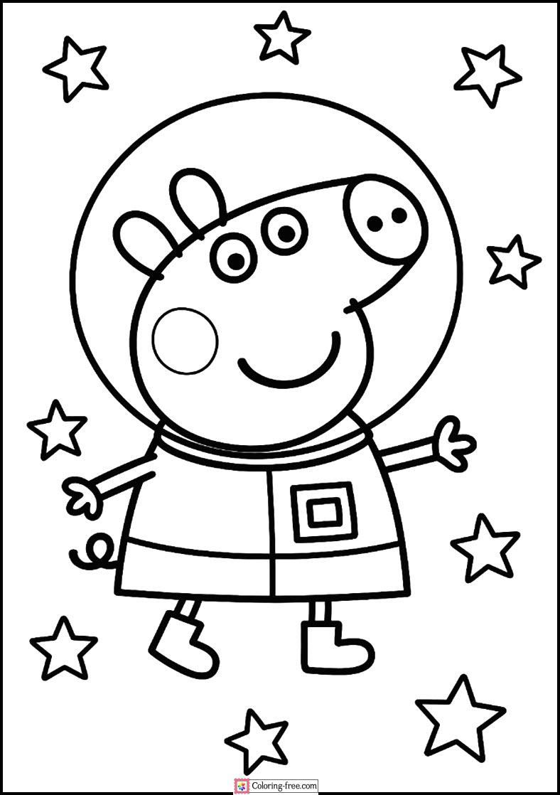 This Peppa Pig in Space with Stars coloring page sends kids on an exciting outer space adventure with their favorite character. Drawn in the vertical format of A4 paper with a... show all