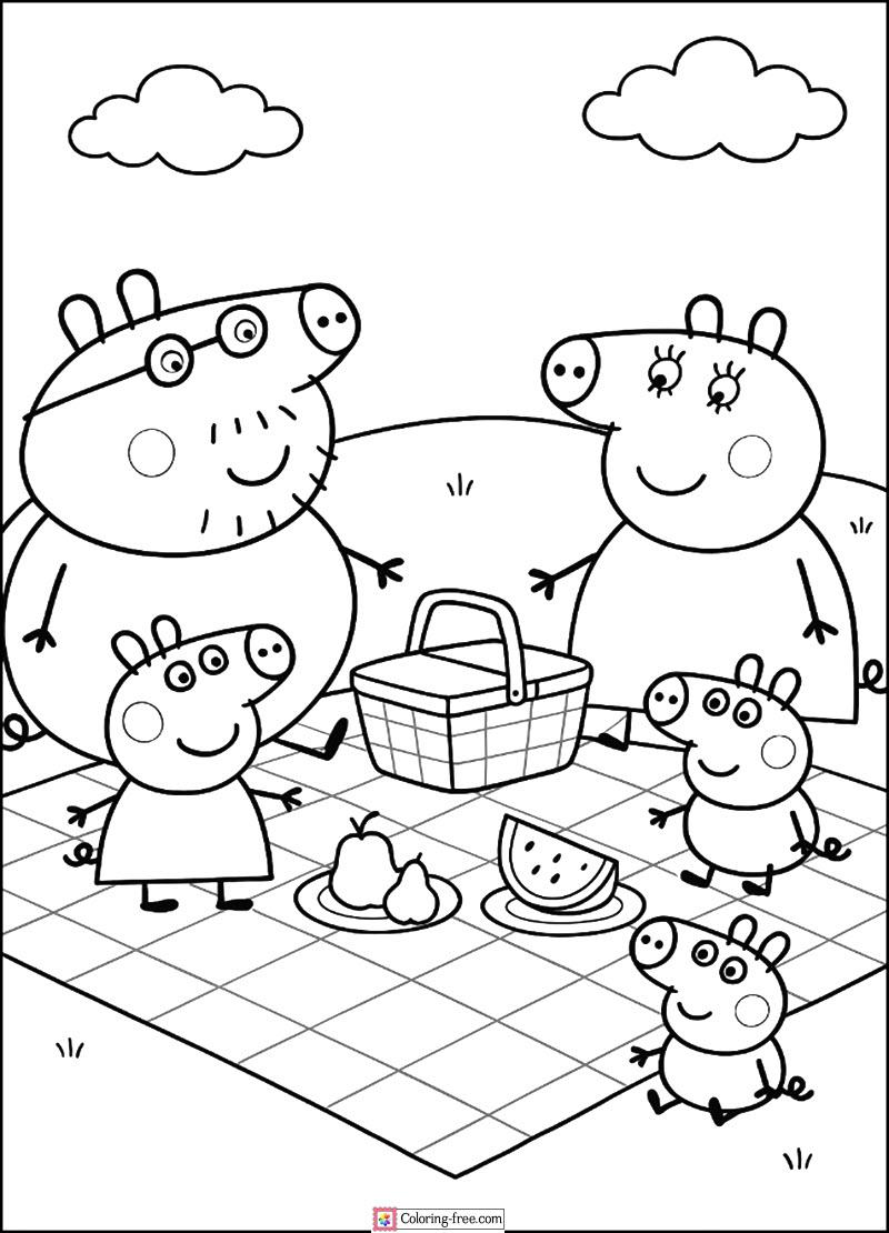 This Family Picnic with Peppa Pig coloring page is a great way to capture the warmth and happiness of a sunny day in the park with Peppa and her family. Designed so as to be read in... show all