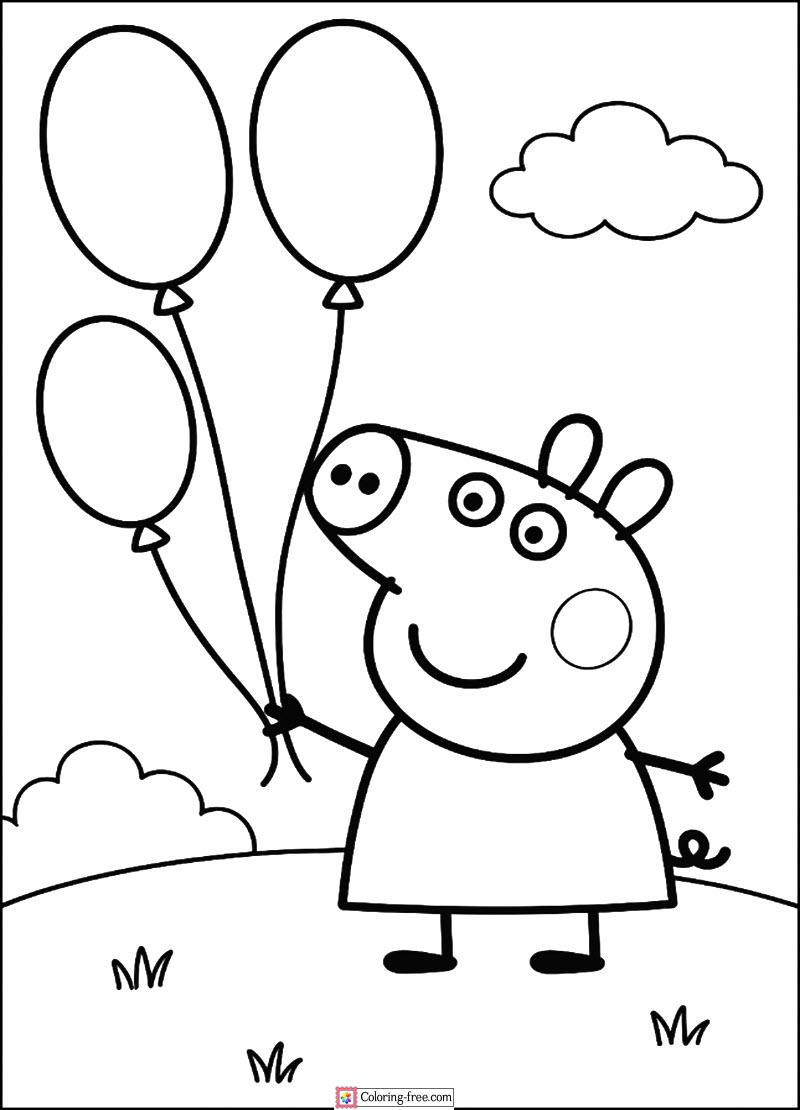 This Peppa Pig with Balloons in the Park coloring page adds joy and celebration to a simple but enjoyable scene. Drawn in vertical A4 format in very clear and bold lines, it features... show all