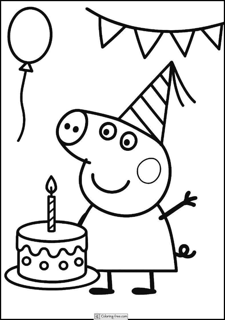 This Peppa Pig at a Birthday Party coloring page is a fun depiction of the excitement and joy of a special occasion. Designed in vertical A4 format in bold simple lines, it depicts... show all
