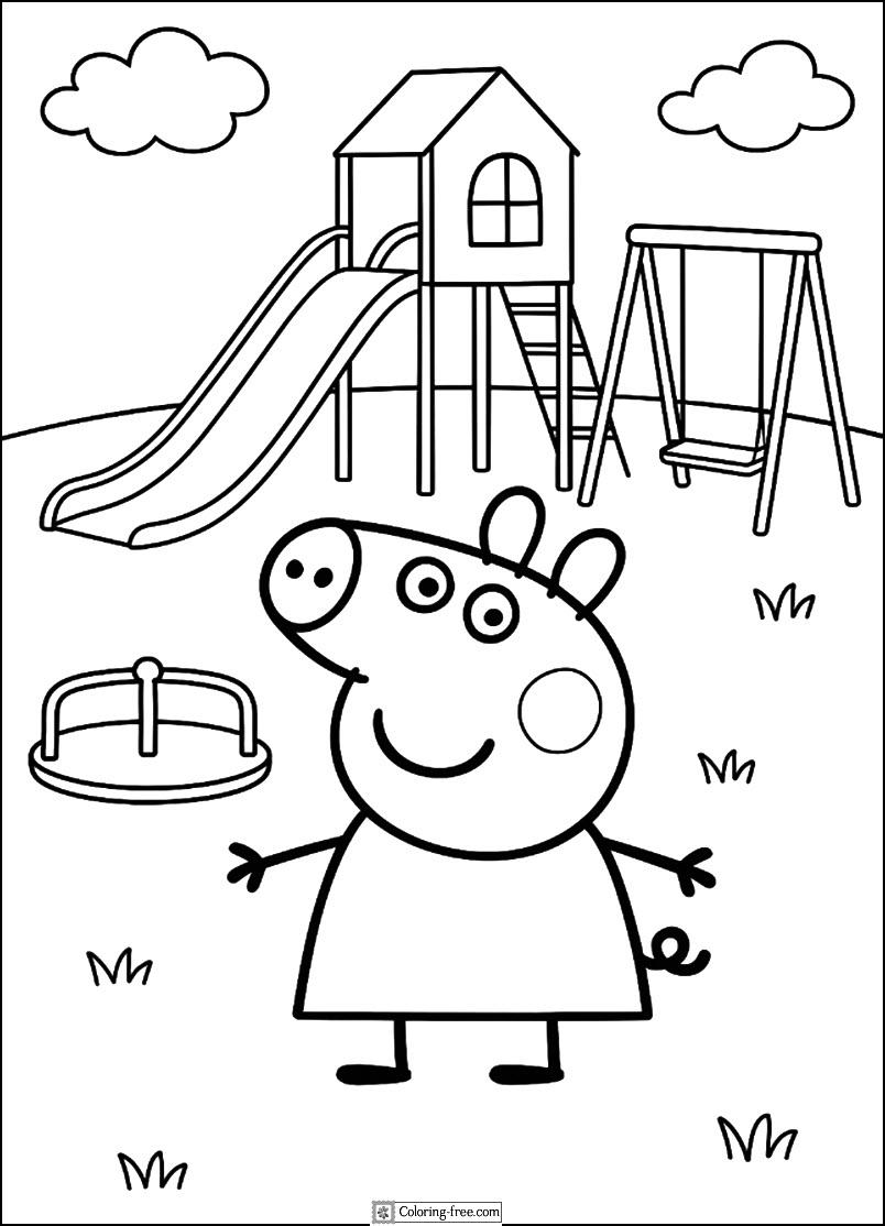 This cute Peppa Pig at the Playground coloring page brings one of children's favourite characters to life in a happy outdoor environment. Designed in a clean vertical A4 format... show all