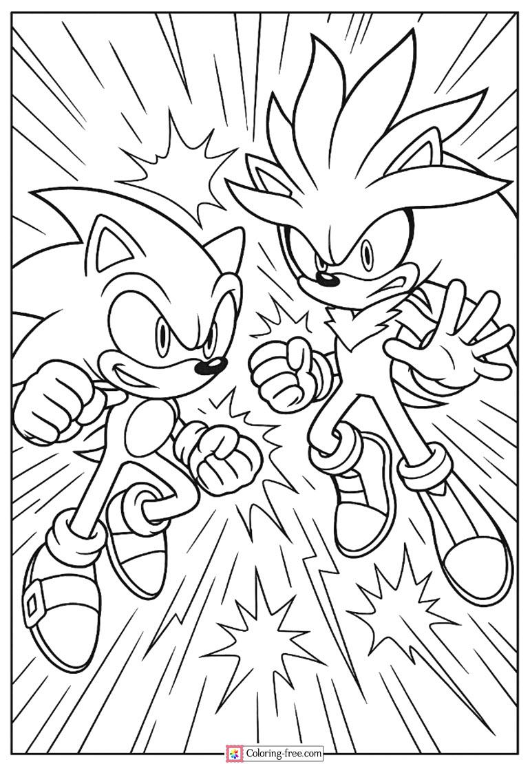 Sonic and Silver attack as one! Solid lines, power blends and heroic cooperation that the Sonic followers should color and play.