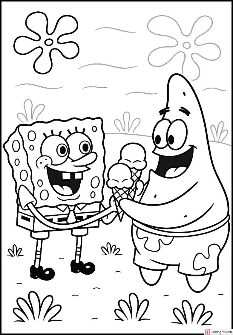 SpongeBob and Patrick colouring on ice cream cones. Two-two-shots activity gap with sponge bob images and bubble guns fun, detailed and cheerful activity sheet to kids and SpongeBob... show all