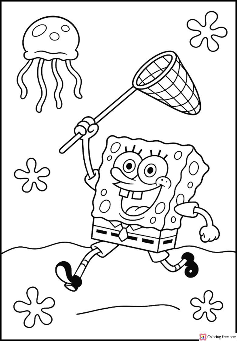 SpongeBob colouring page is fun with his typically colouring and chasing the jellyfish with his net which is ideal in whichever kid as they some creative colouring time.