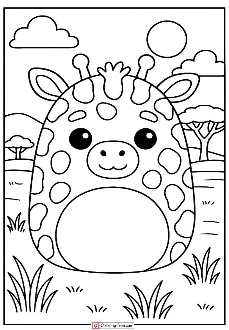 Gary the Giraffe Squishmallow Explores the Savanna Abacacia Tree Tall Grasses A crazy, crazy, crazy adventurous coloring page for the fans.