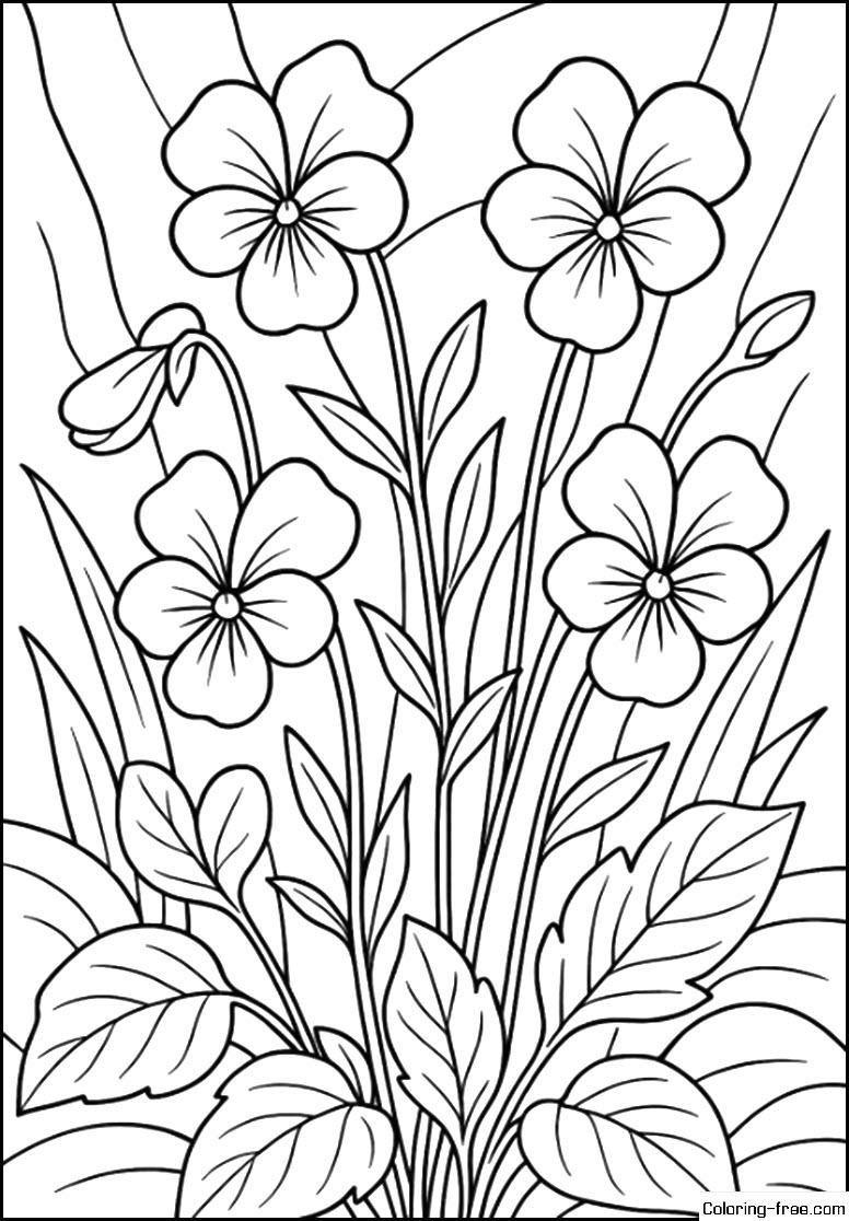 Artistic Wild Flowers Coloring Pages: The colouring page Artistic Wild Violets in Forest Shade importantly includes elegant flowers under sunny woodland light this page is ideal to relax, gather creative, and thoughtful colouring.